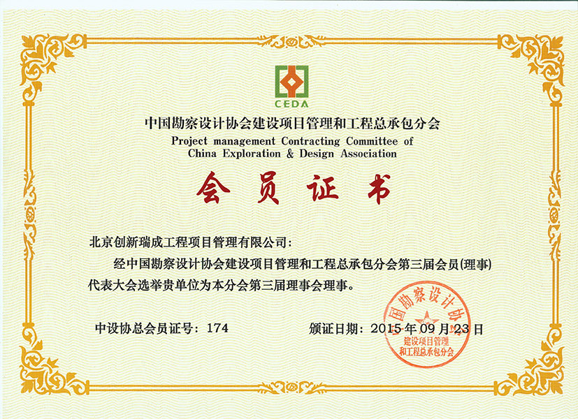 建設(shè)項(xiàng)目管理和工程總承包分會(huì)會(huì)員證書(shū)(2015)