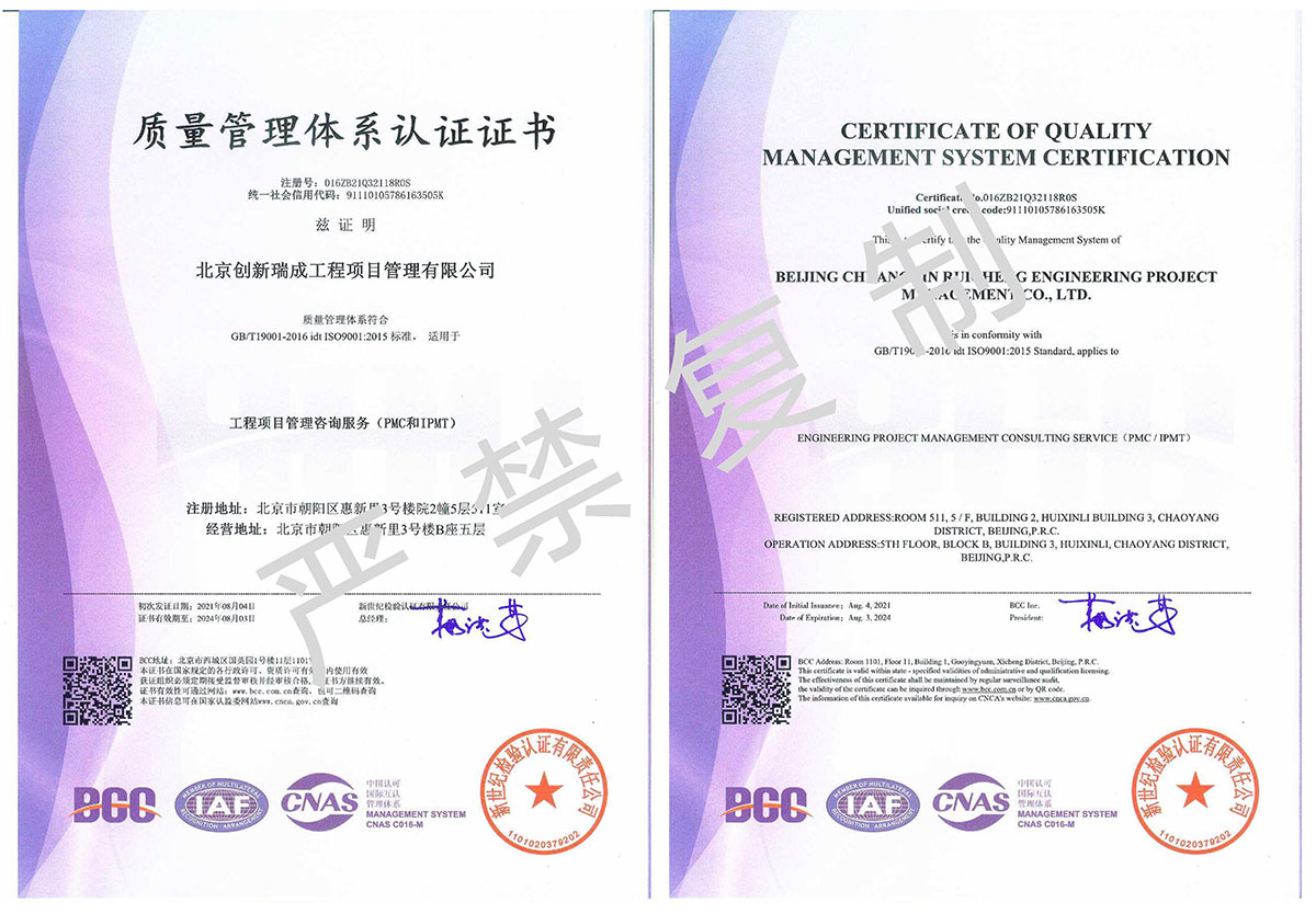北京創(chuàng)新瑞成《質(zhì)量管理體系認(rèn)證證書(shū)》