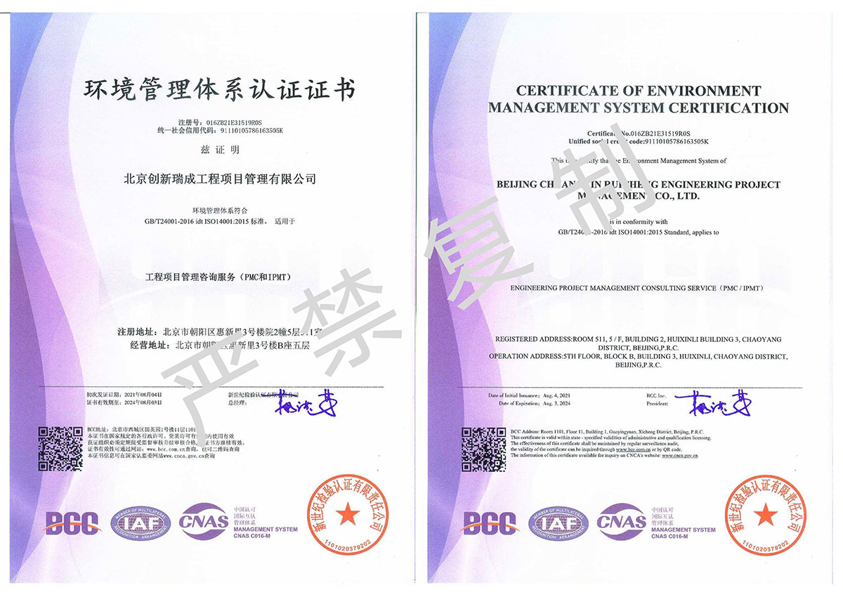 北京創(chuàng)新瑞成《環(huán)境管理體系認(rèn)證證書(shū)》