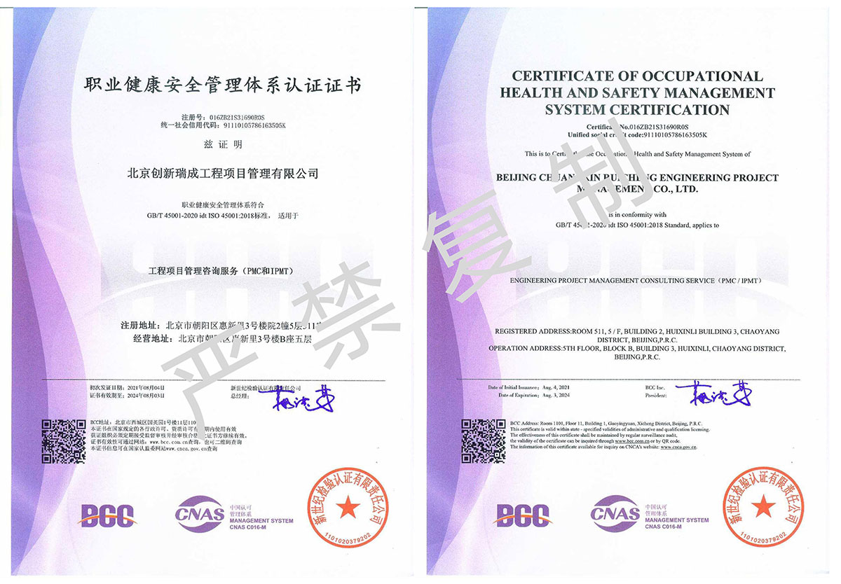 北京創(chuàng)新瑞成《職業(yè)健康安全管理體系認(rèn)證證書(shū)》