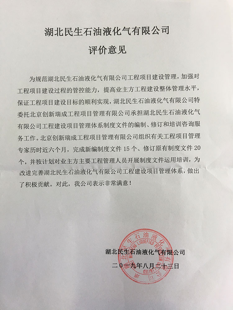 湖北民生石油液化氣有限公司評(píng)價(jià)意見(jiàn)(2019)