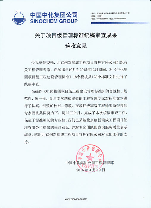 中國(guó)中化集團(tuán)咨詢(xún)服務(wù)業(yè)績(jī)證明(2016)