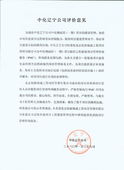 咨詢(xún)工作獲中化遼寧公司表?yè)P(yáng)信(2013)